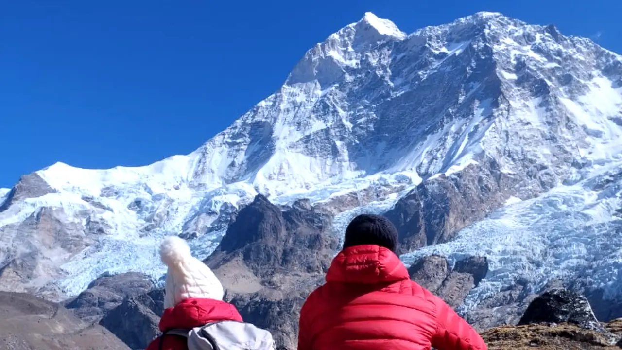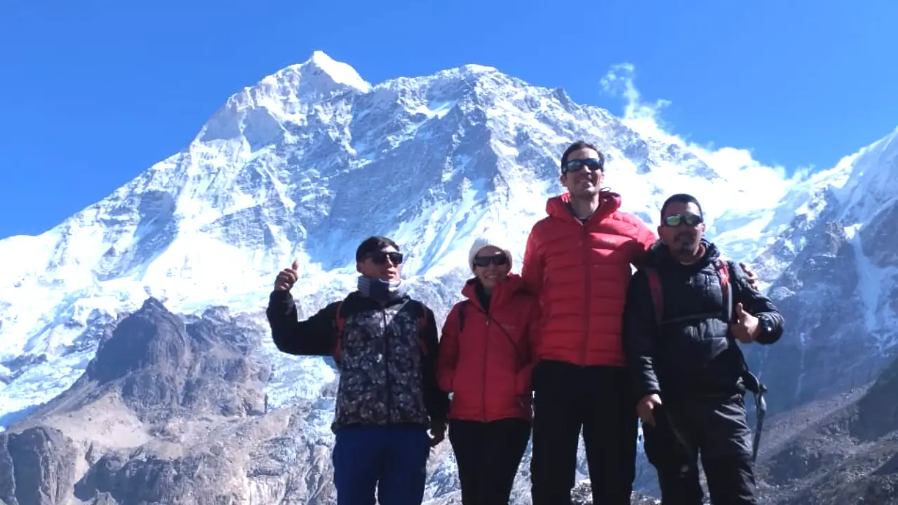 This walk over the ridgeline can be tricky, as we have to traverse over loose rocks and icy patches. Trekking poles are highly recommended for this section. Soon, we will make it to the base camp where an amazing face-to-face view of the Makalau peaks awaits us. This is the 5th highest peak on the planet, reaching over 4870 meters of height