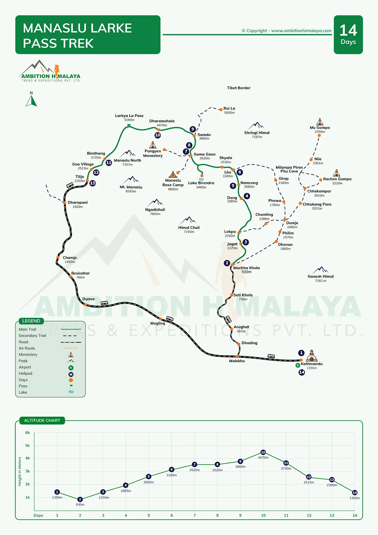 Itinerary of Manaslu Larke Pass Trek 14 Days