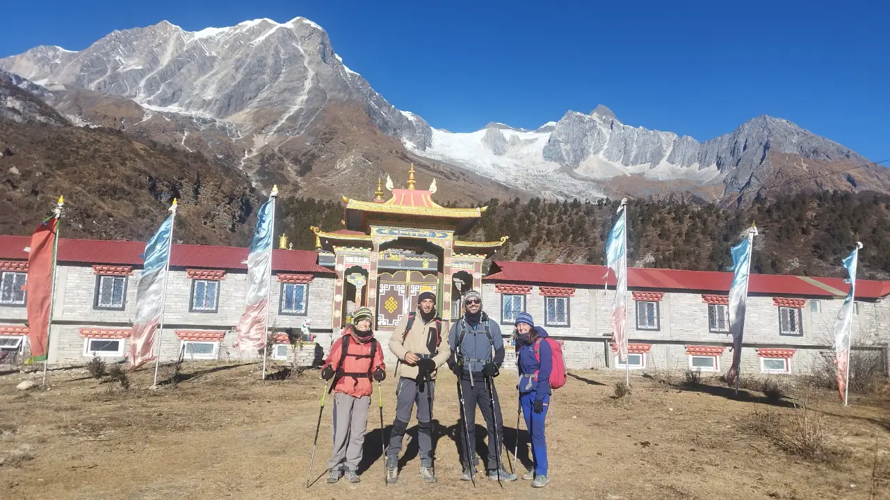 We will be able to appreciate the gorgeous Lidana Glacier from here. Soon, we will arrive at the Buddhist village of Namrung where we can later take a tour of its small Gompa. Pang Phuchin (6335 m), Saula Himal (6235 m), and Manaslu kiss the sky of Namrung.