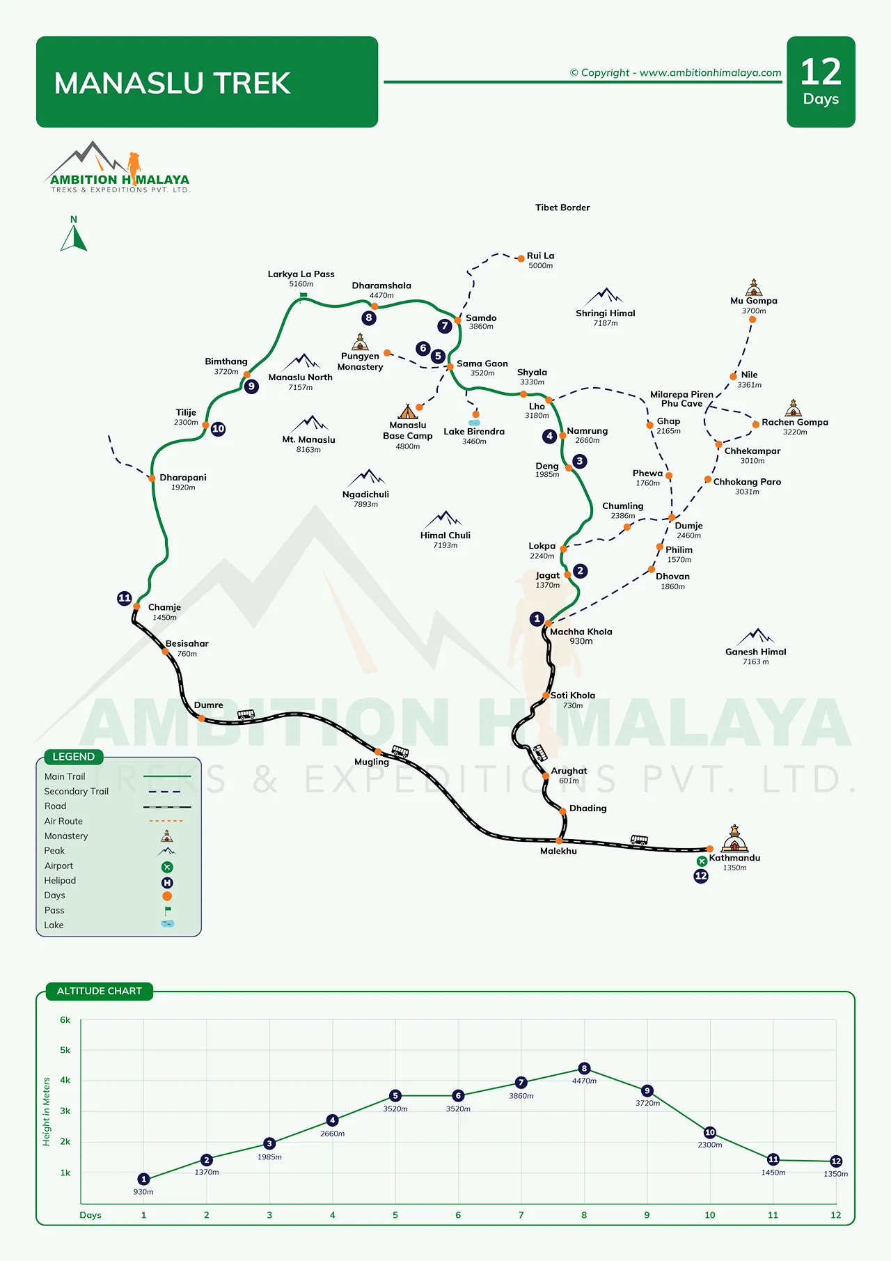 - Manaslu Trek – 12 days one of the well-known treks or restricted route on Nepal