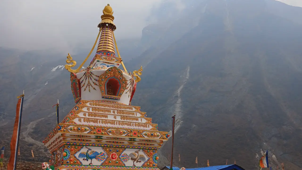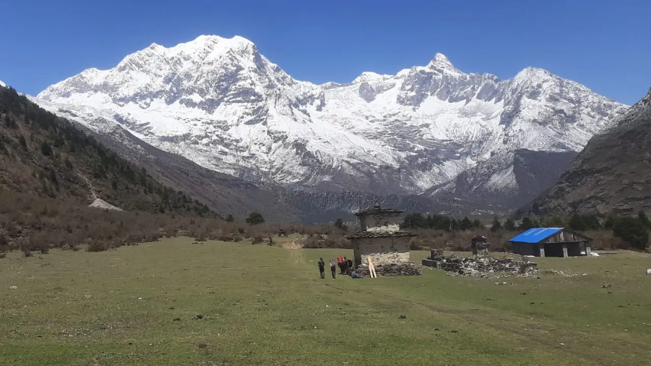 It’s a short distance from Nile village to Mu Gompa, we just have to trek 5 km to get there, which takes about 2.5 to 3 hours to complete. This trek gains us 344 meters of elevation and follows the Syar Khola river for most of the way. Trekking along the western shores of the Syar River, we will trek a gradual ascent and visit a couple of Chortens on the way.