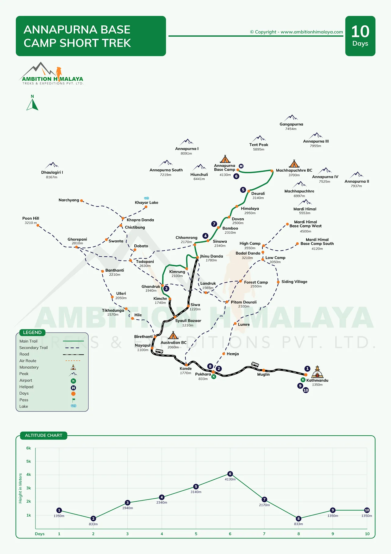 | 06 | Trek | Deurali - MBC - Annapurna BC | 3,700/4,130 | 4-5 hrs | Guesthouse | B L D |