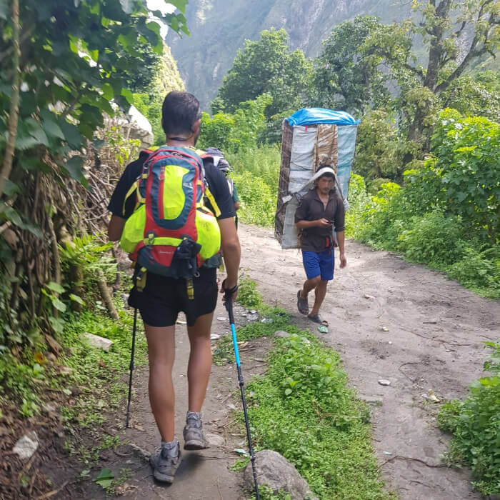 There is a big ravine of the Chhomrong river ahead of us. This part of the trek is difficult. The last part of the trek is relatively easy. We will reach Sinuwa after a long day’s trek and rest there for the night.
