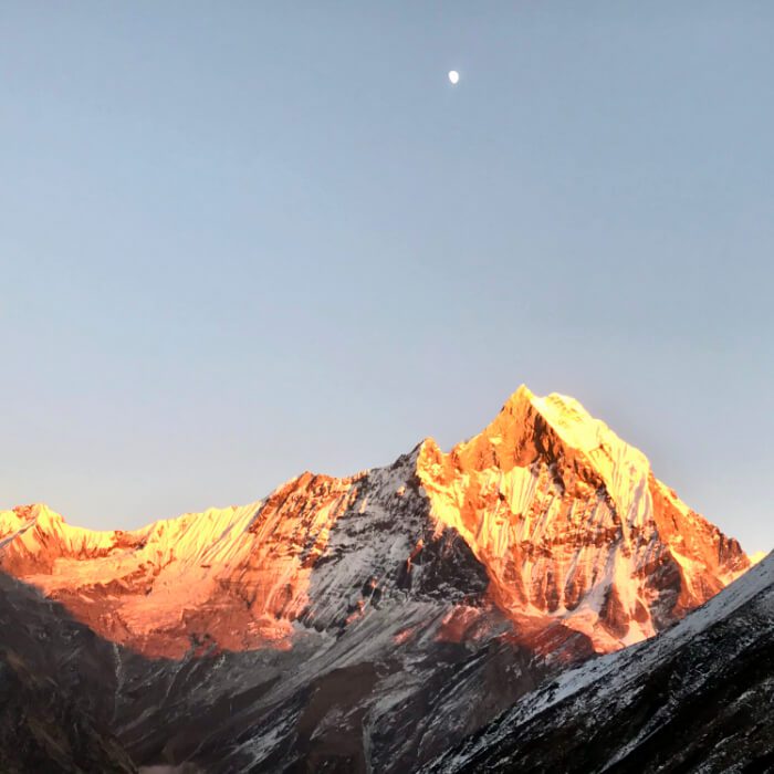 Mt Fishtail is a holy mountain and was recently named the 13th most beautiful mountain in the world. We will have to walk past the base camp of Mt. Machhapuchhre to reach Annapurna Base Camp. Machhapuchhre is also known as the ‘Matterhorn of Asia’.