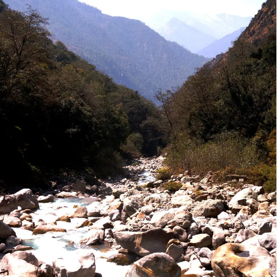 Comenzamos desde Syabrubesi, cruzamos el río salvaje y embravecido Bhote Koshi y avanzamos lentamente a lo largo de la orilla del Langtang Khola (riachuelo). Caminaremos por hermosos bosques de rododendros y robles y descansaremos al llegar a Bamboo Village (1.960 m). Si el tiempo lo permite, los lugareños podrán observar la recolección de miel silvestre en los acantilados. Nos dirigimos hacia el Hotel Lama (2.350 m) después de un breve descanso y pasaremos la noche aquí.